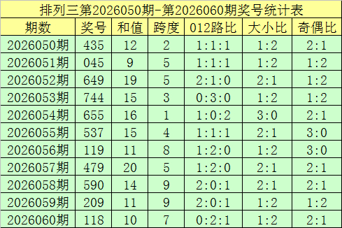 开奖转头:胪列三第2026060期奖号开出:118,组选类型:组三体育录像/图片,大小比为1:2,奇偶比为2:1,和值为10,跨度为7。