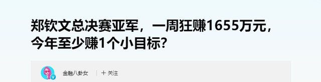 对于郑钦文在赛场上的优异成绩,除了国度赐与的高度荣誉,最为径直的奖励即是奖金了,每次赛的冠军王人有一笔不小的奖金,据有关媒体的共计,郑钦文的比赛奖金有3990万东说念主民币。
