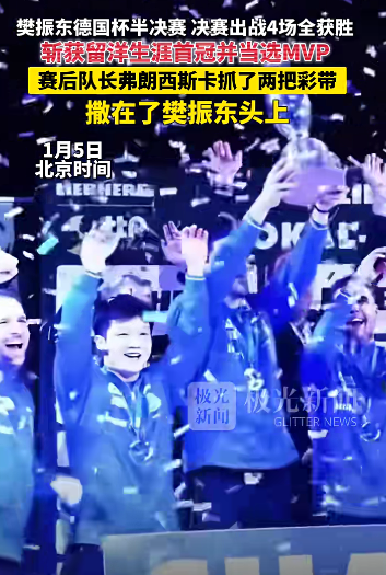 当地时间1月4日,樊振东地点的萨尔布吕肯俱乐部以总比分3-1投降富尔达马伯策尔俱乐部,夺得德国杯冠军。樊振东孝顺2分,收货个东说念主留洋生活首冠并当选MVP。