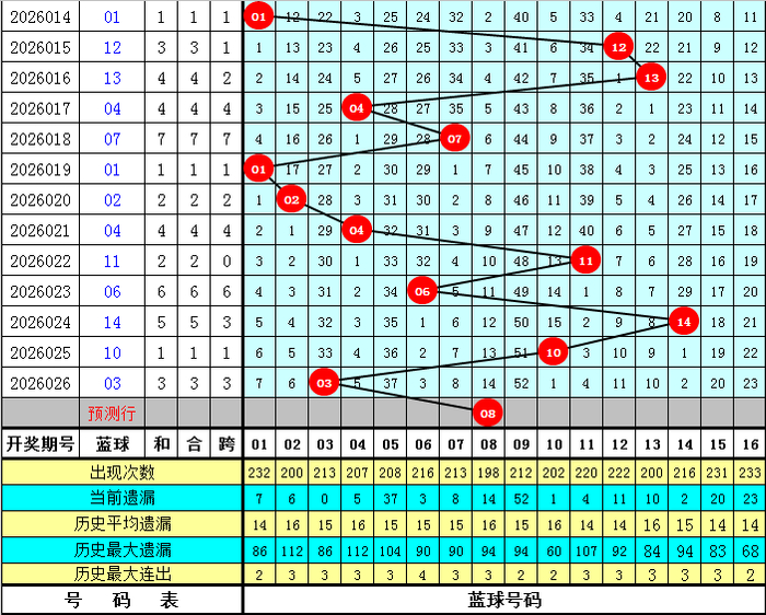 蓝球分析:蓝球小 号发达尽头活跃,短期内莫得转冷的迹象,本期看好小 号蓝球再次出现,参考蓝球号码:01 02 07 08。