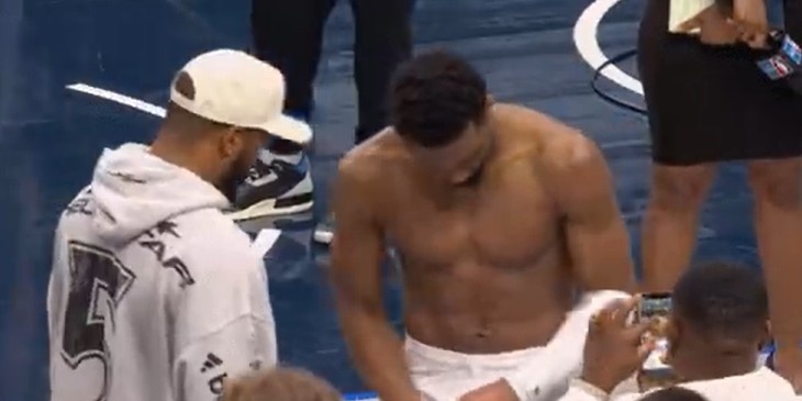 孑然腱子肉!米切尔赢球后激情大好 光膀子与NFL球星聊天体育赛事直播